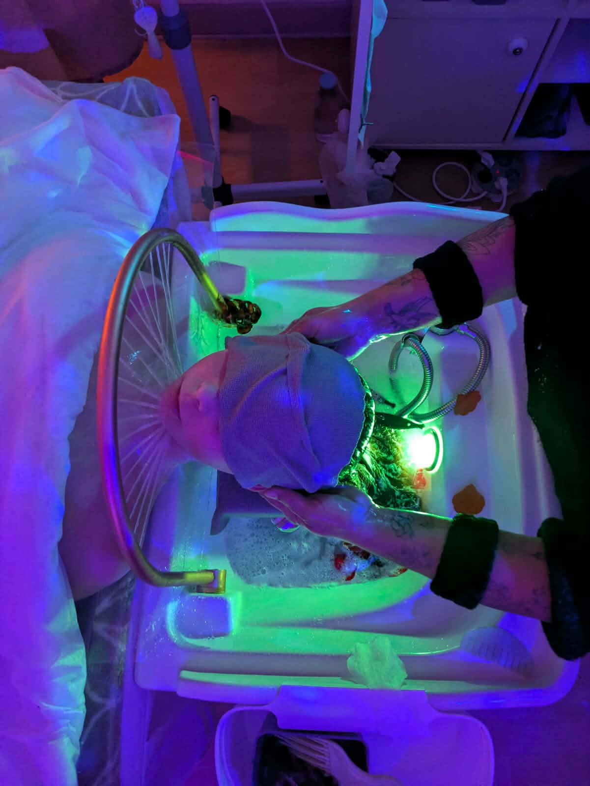 Un bac est réservé aux pieds, un autre à la tête. Le ponçage se fait avec une ponceuse électrique aux disques individuels et jetables