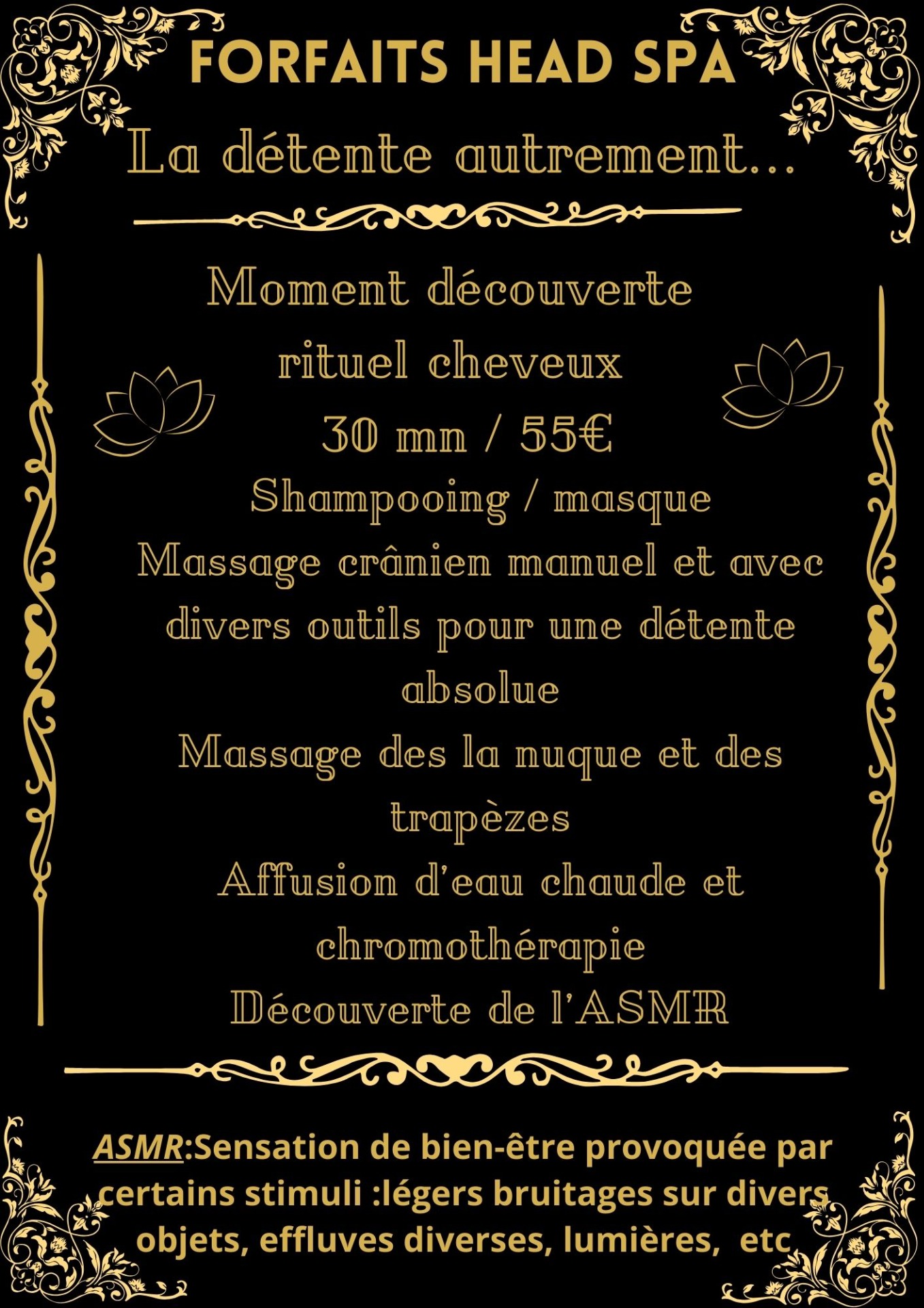 Proposer le Head Spa m' a inspirée pour proposer aux adeptes des massages des pieds, le Feet Spa. Donc c'est une prestation innovante et unique car imaginée, pensée et concrétisée par moi-même.
